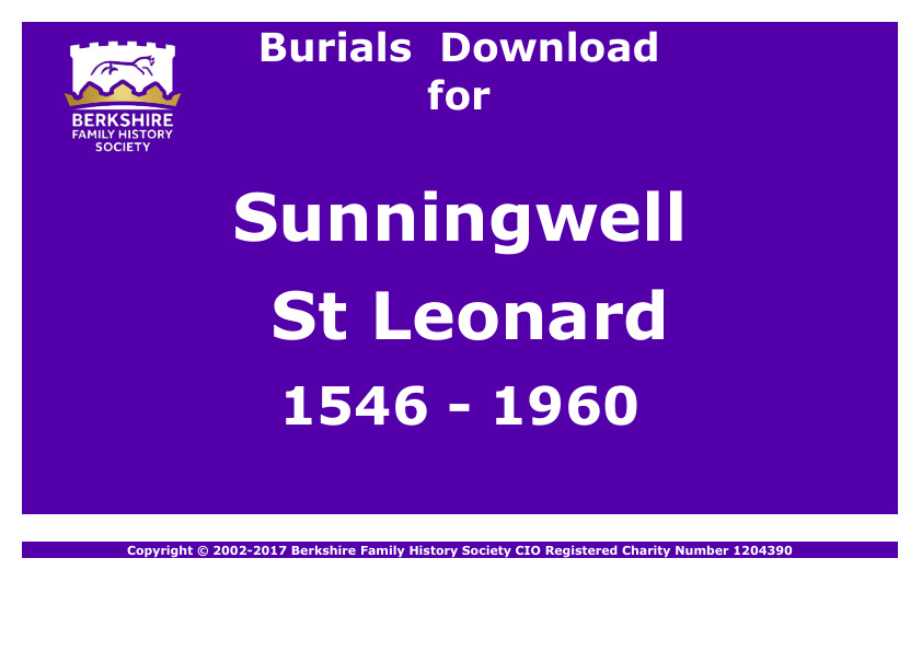 Sunninghill St Michael & All Angels Burials 1561-1947 Download D1215