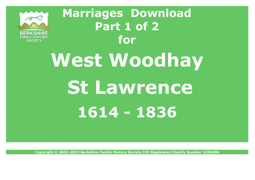 West Shefford St Mary Marriages 1599-1837 Download D1373